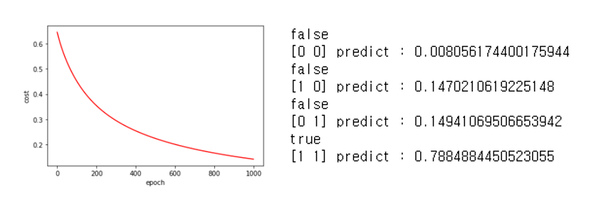 위에서 구현한 Logistic regression을 통해 AND, OR gate를 학습시킨 결과는 다음과 같다.