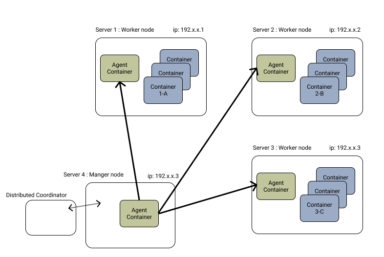 Swarm Mode는 크게 manager node 와 worker node로 구성 되어 있으며, Swarm Mode 내부에는 여러개의 도커 서버 정보를 저장하고 동기화 하는 Distributed Coordinator, 각 서버를 제어하는 에이전트 등이 도커 엔진 내부에 존재하여 서버 클러스터를 구축 할 수 있게 해준다.
