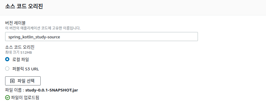 4. 코드 업로드(로컬에 있는 build/libs/ 안에 있는 .jar파일을 선택)