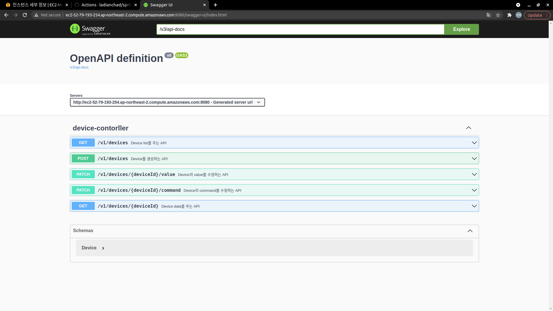 이제 elastic beanstalk dns로 접속하여 만든 API 문서를 확인하면 다음과 같이 잘 나온다.